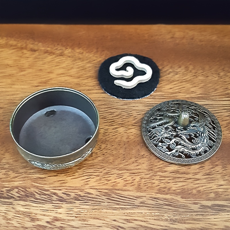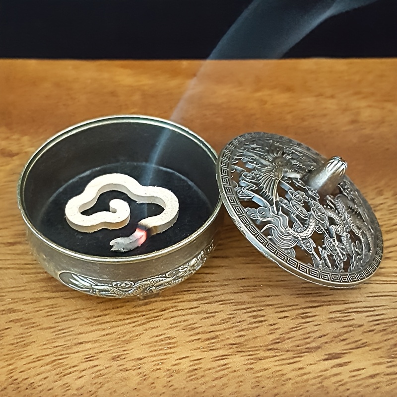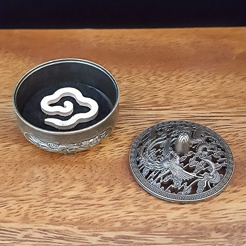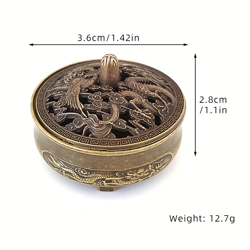Exquisite metal incense burner with intricate dragon and phoenix patterns. It’s suitable as a gift for friends, parents, etc.